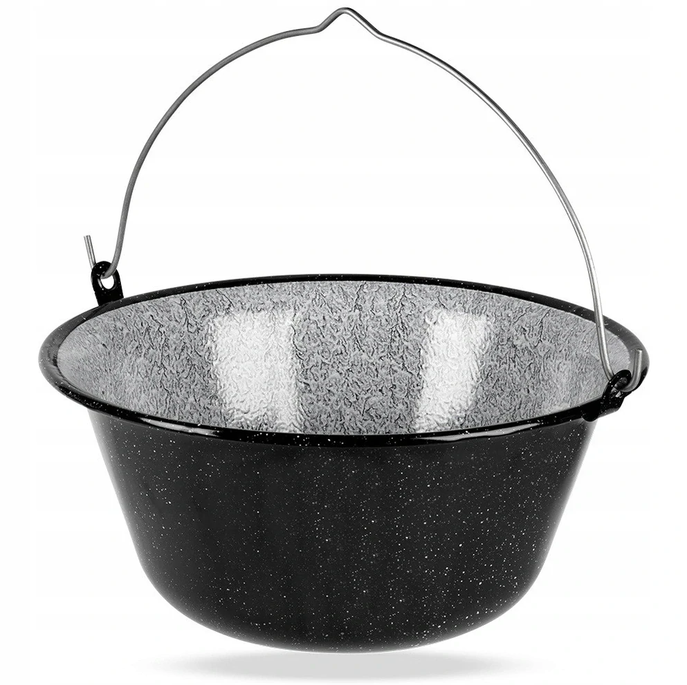 Smaltovaný kotlík o objemu 16 l je vhodný pro outdorové vaření guláše v přírodě, v zahradě nebo v otevřené kuchyně, především pro chalupáře, chataře, do kempu a na táboření.