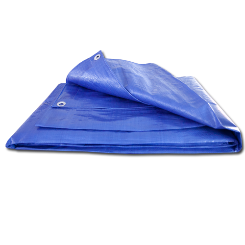 Zesílená krycí plachta v modré barvě, s nerezavějícími oky a oboustrannou laminací, ochranou proti povětrnostním vlivům a extra zesílenými okraji.